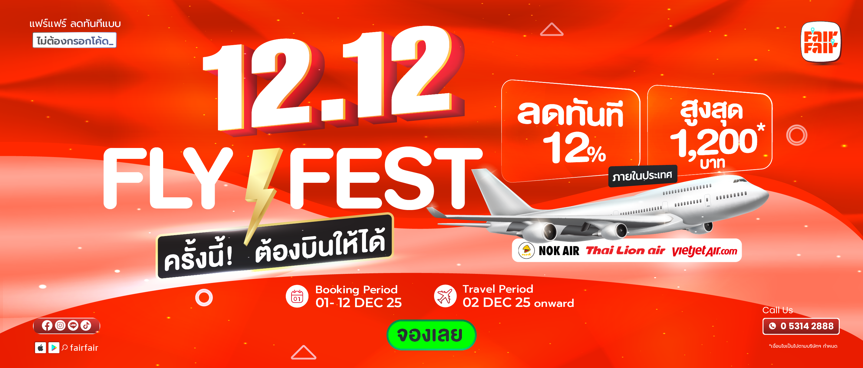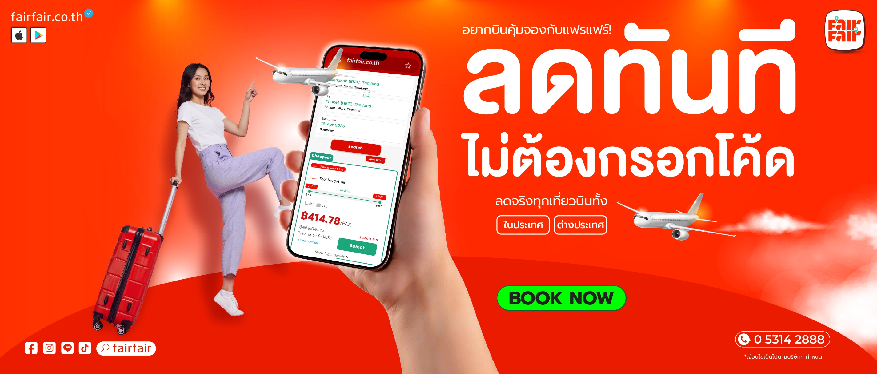 ข้อกำหนดและเงื่อนไขเหล่านี้ควบคุมการรับสิทธิ์ส่วนลดเที่ยวบินที่ไม่ต้องกรอกรหัส (Non-Code Discount) ที่เสนอโดย FairFair ในฐานะตัวแทนการจอง FairFair ขอสงวนสิทธิ์ในการเปลี่ยนแปลงหรือยกเลิกโปรโมชันนี้ได้ตลอดเวลา