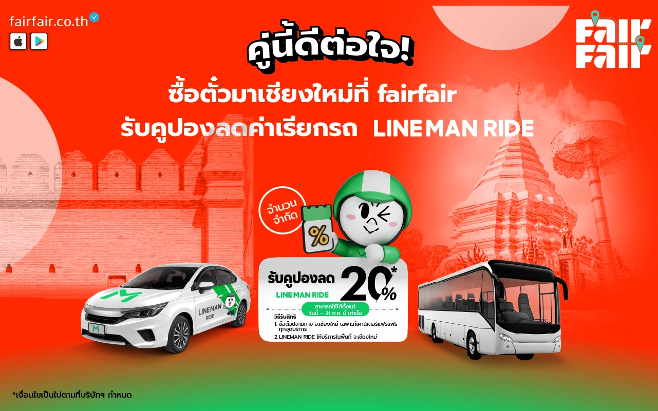 จองตั๋วรถไปเชียงใหม่กับ FairFair วันนี้ รับคูปองส่วนลด LINE MAN RIDE 20%!